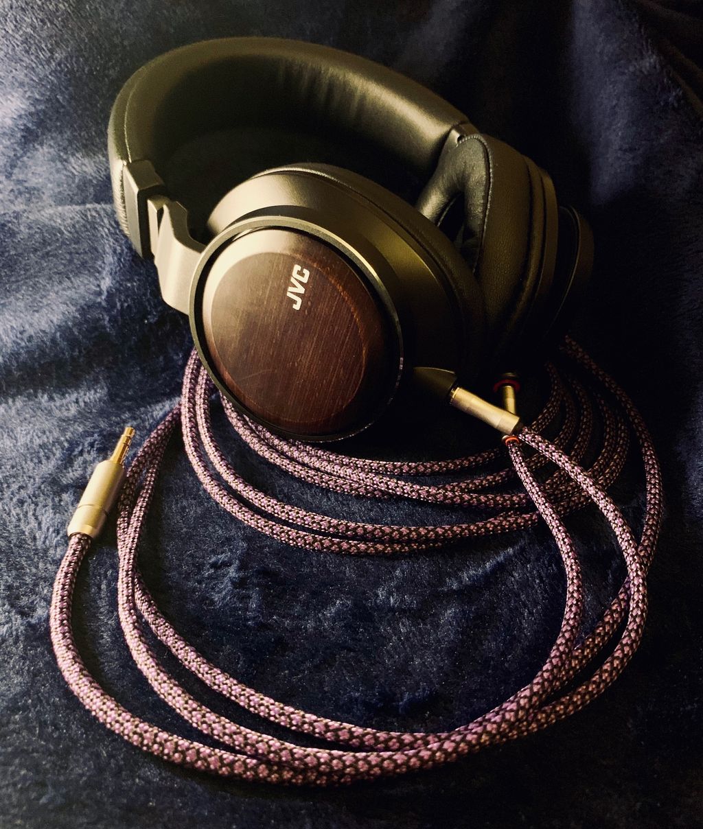 ケーブルの色も、少し濃いかもしれないと思いましたが、これまた紫と黒が着物みたいな和感があってHA-SW01に合ってると個人的に思いました。部屋が間接照明しかないので色合いが分かりにくいかもですがお写真送りますね。
